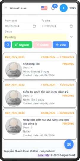 Phần mềm quản lý đăng ký nghỉ phép năm online không chỉ đơn thuần là một công cụ tiện ích mà còn là giải pháp tối ưu cho doanh nghiệp trong việc quản lý thời gian nghỉ phép của nhân viên. Một trong những tính năng nổi bật nhất của phần mềm này là khả năng gửi và phê duyệt yêu cầu nghỉ phép trực tuyến. Nhân viên có thể dễ dàng tạo yêu cầu nghỉ phép thông qua giao diện người dùng thân thiện, tiết kiệm thời gian so với việc thực hiện bằng giấy tờ.